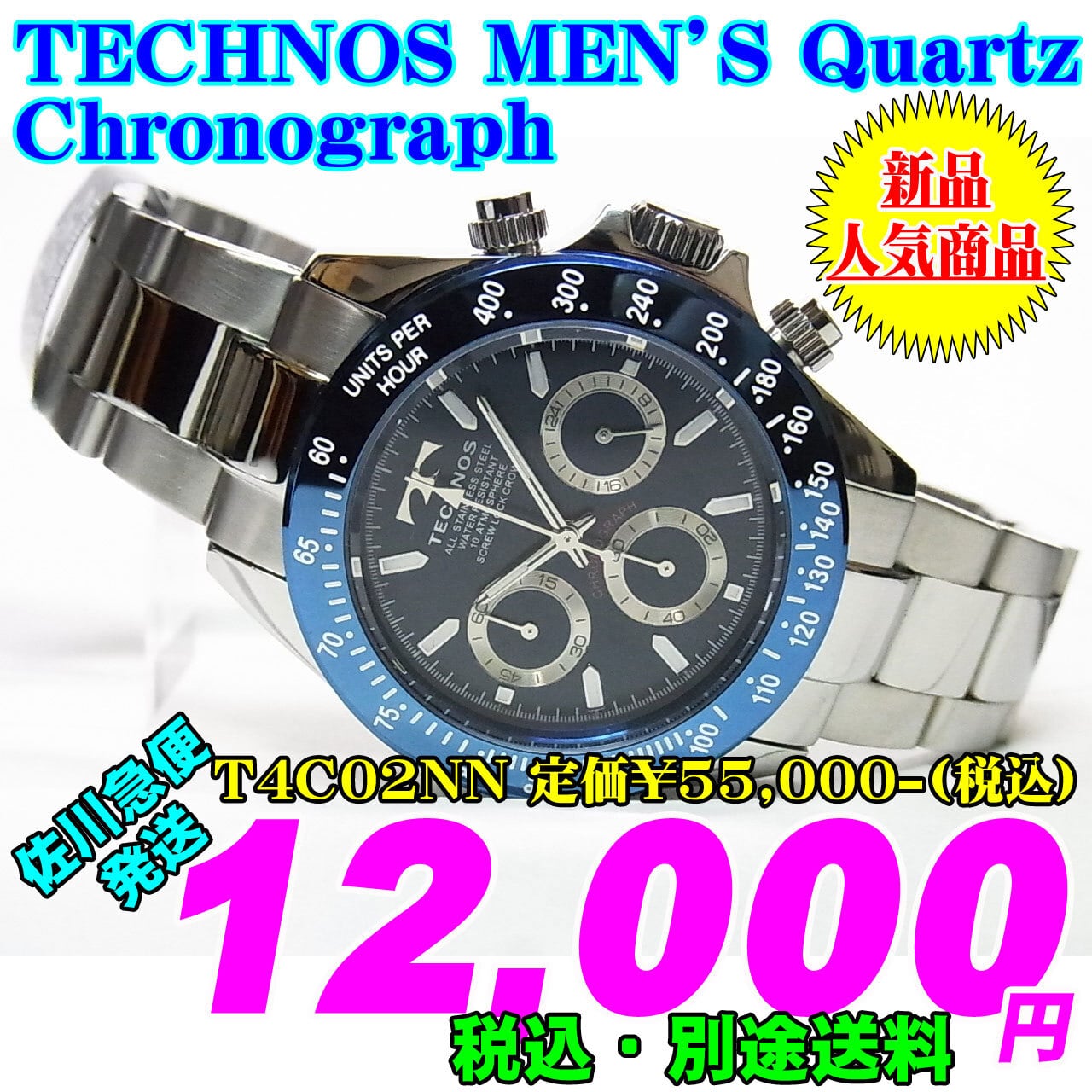 TECHNOS テクノス MEN'S 紳士 Chronograph クロノグラフ T4C02NN 定価¥55,000-(税込)新品